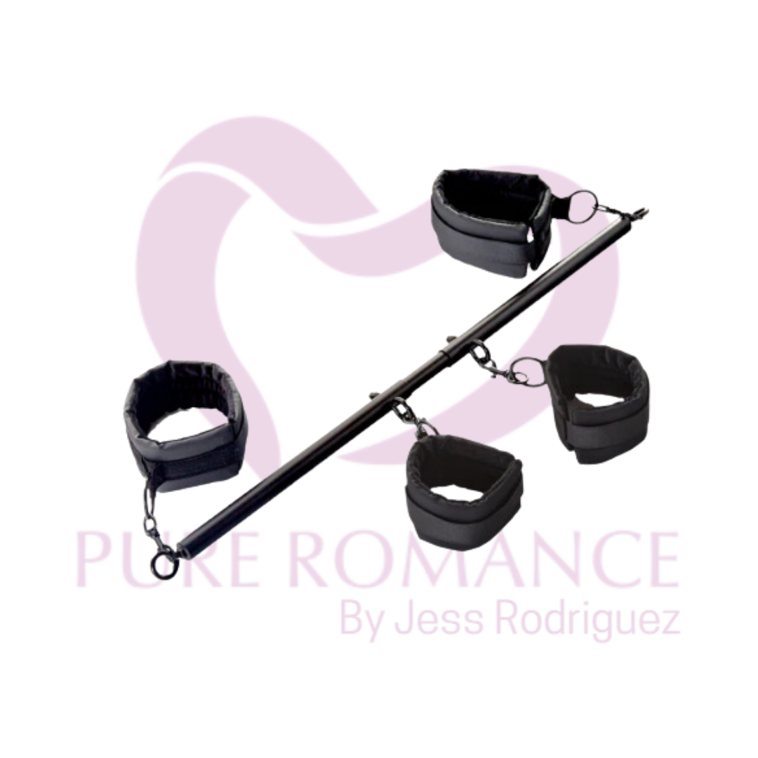 Feel the soft cuffs against your skin as your partner tightens them around your wrist, ankles, or both. Give in to their control as the bar extends, holding you in place, spreading you wide. Passion, power, and pleasure collide in an unparalleled experience…