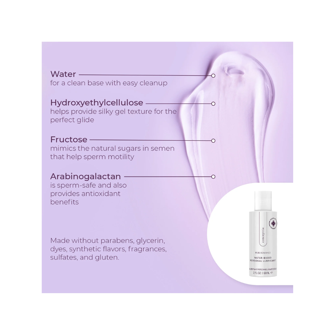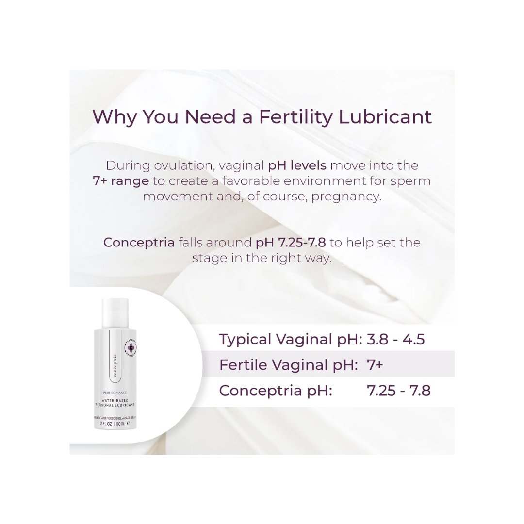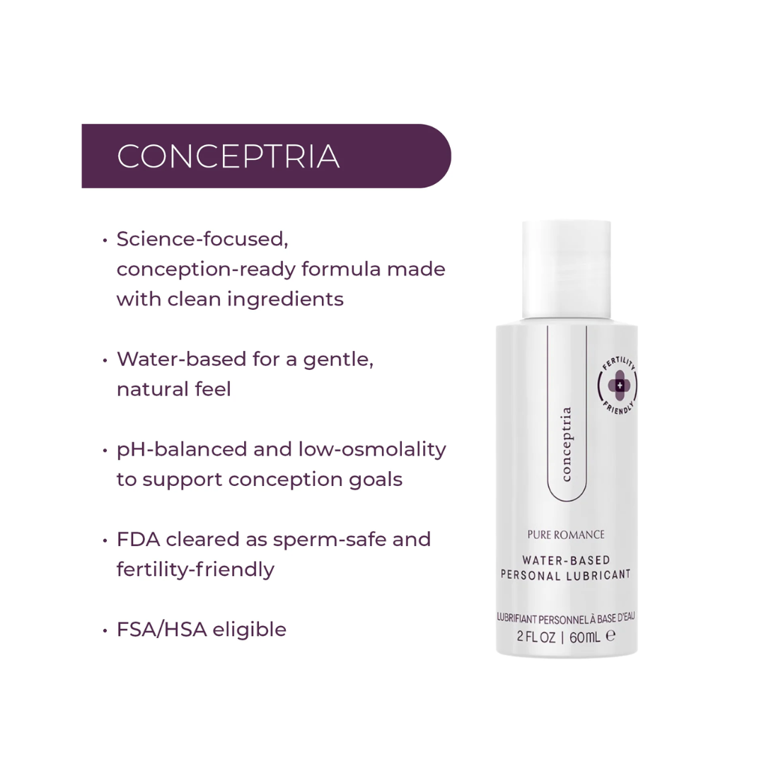 ¿Tratando de concebir? Deje de lado todo lo demás y opte por Conceptria, un lubricante favorable a la fertilidad que ayuda a preparar el escenario para la concepción y devuelve la diversión a la intimidad. Porque somos realistas, ¡el sexo no debería parecer un trabajo!