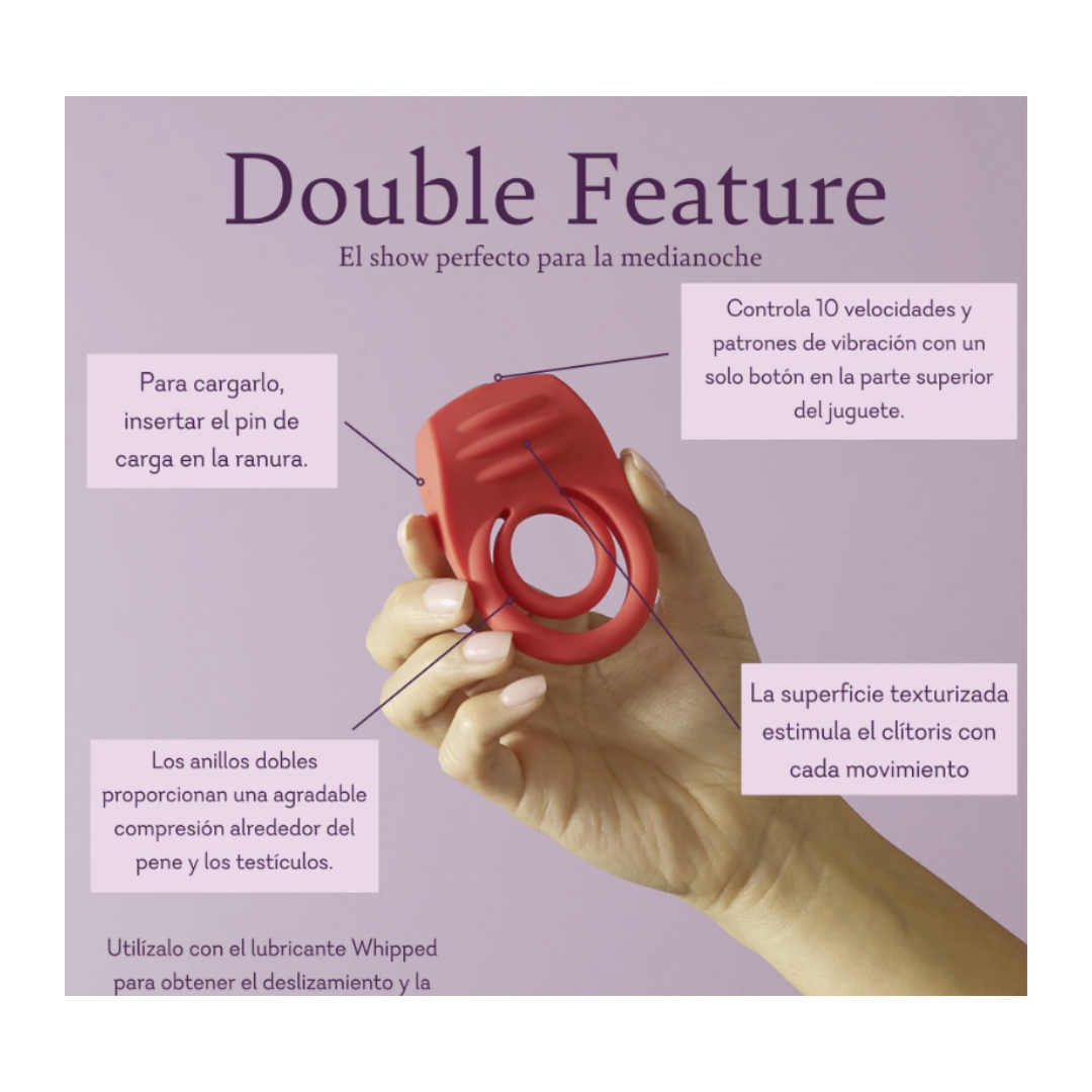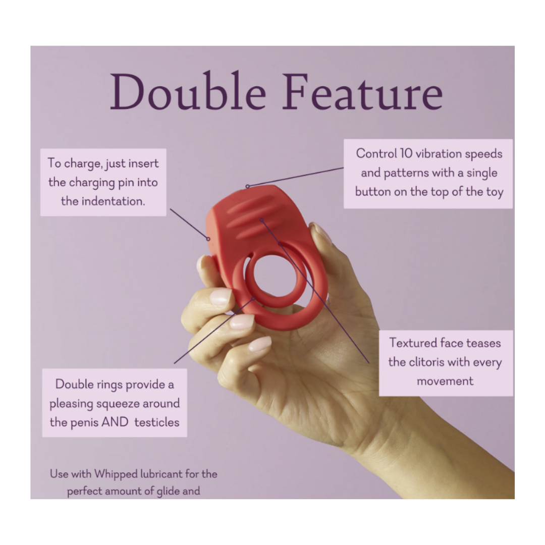 Cuando una actuación increíble no es suficiente, ¡necesitas una función doble! Los anillos gemelos flexibles ofrecen sensaciones satisfactorias para tu pareja, mientras que un potente vibrador de clítoris de 10 funciones te brinda un placer intenso. Deslice un anillo de silicona sobre el pene y el otro sobre los testículos, luego gire el masajeador acanalado hacia su clítoris para un espectáculo alucinante que recién comienza.