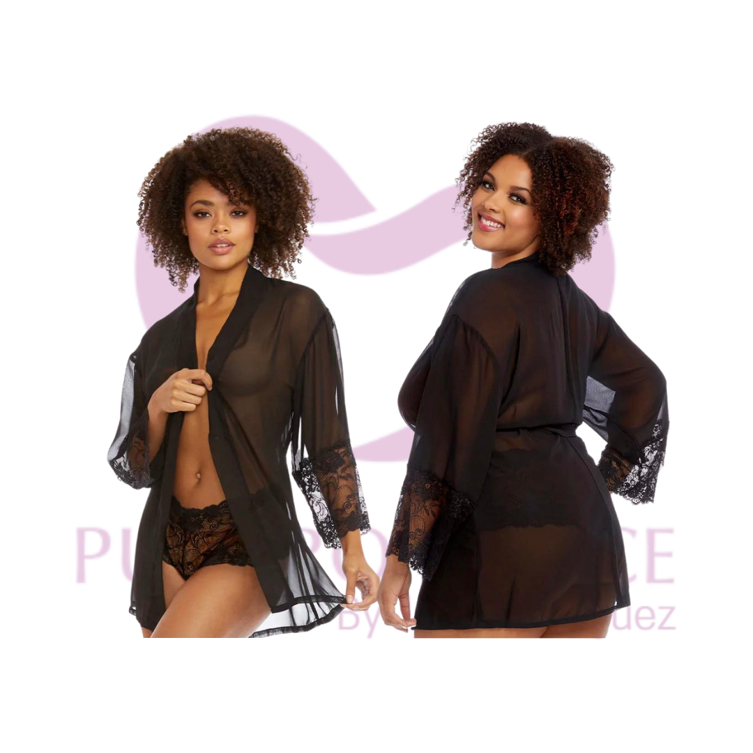 En negro seductor, cada pieza transparente te hace sentir tan irresistible como te ves. Quítese lentamente la bata y brindeles un espectáculo o invítelos a soltarse la faja y hacer que sea una noche para recordar.