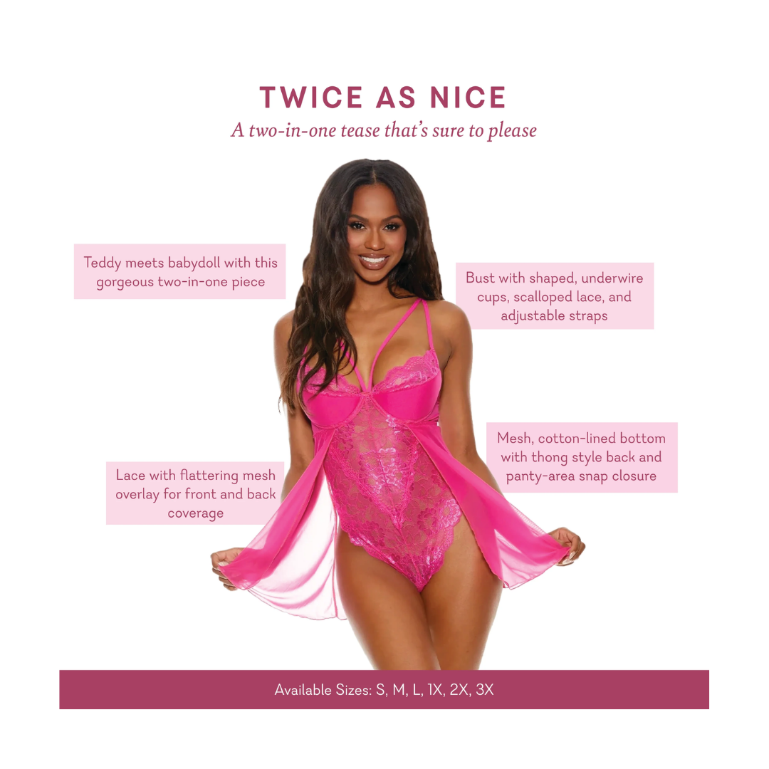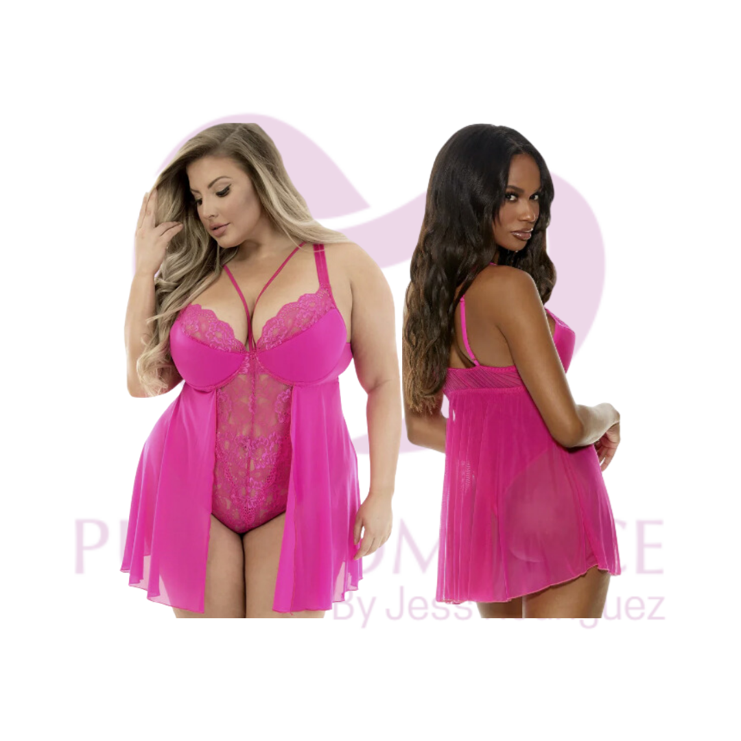 El rosa no es solo un color, es una actitud, así que entra en esta pieza dos en uno y no te detengas. Con un precioso encaje que se adapta a las curvas y una superposición de malla favorecedora, el teddy se encuentra con el babydoll en un estilo atractivo que querrás usar noche tras noche.