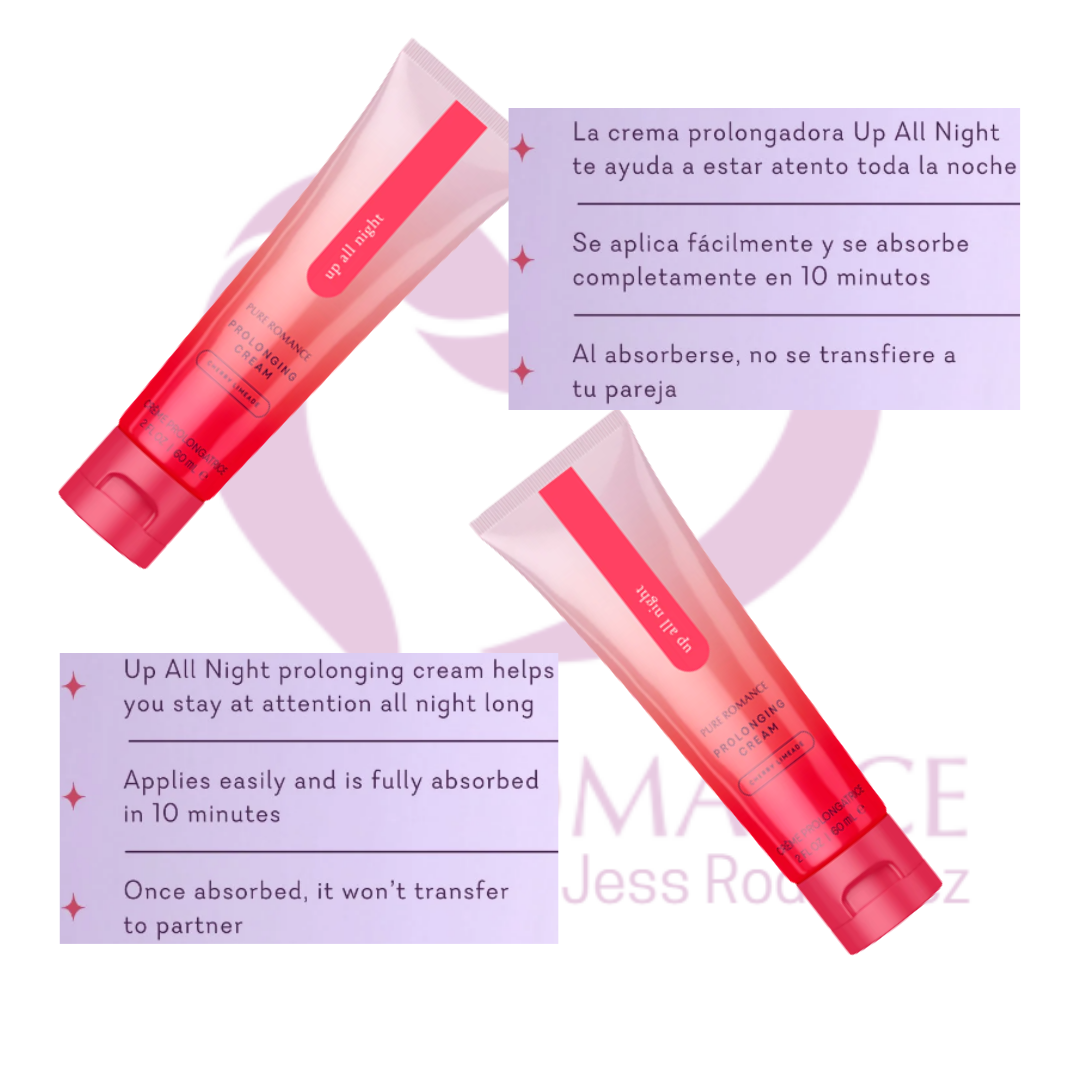 crema prolongada está formulada para ayudar a su pareja a mantenerse erguida y atenta durante toda la noche. El sabor Cherry Limeade endulza el placer oral pero no se transfiere una vez absorbido. Up All Night se pone a trabajar rápidamente (alrededor de 10 minutos) para asegurarse de que no trabaje demasiado rápido. Sigue tu camino hacia la diversión tentadora hasta que salga el sol.