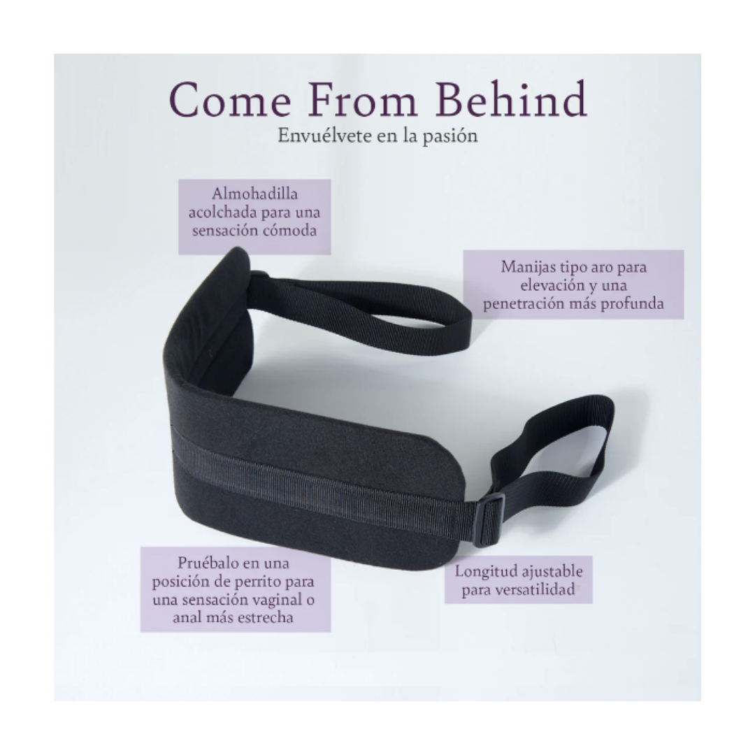 This position strap features a cushioned pad, two looped handles, and an adjustable length so it can fit just about anyone. Specially designed to enhance doggie-style, Come From Behind allows for more pleasurable angles, deeper penetration, and better orgasms.