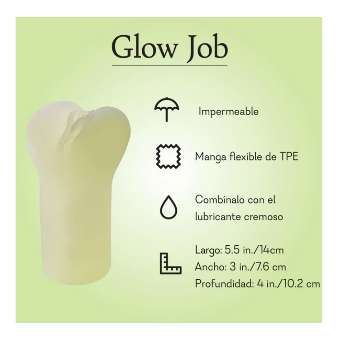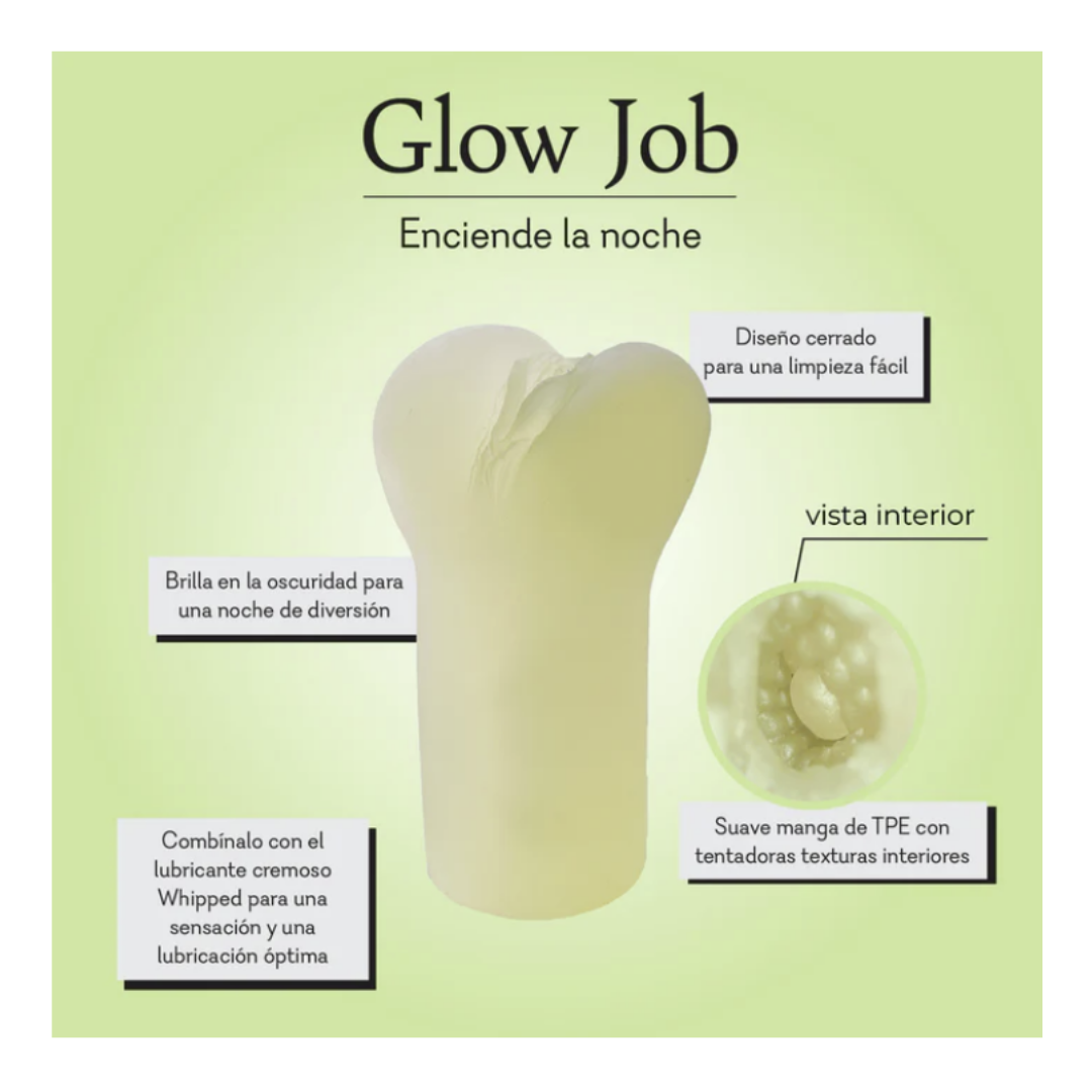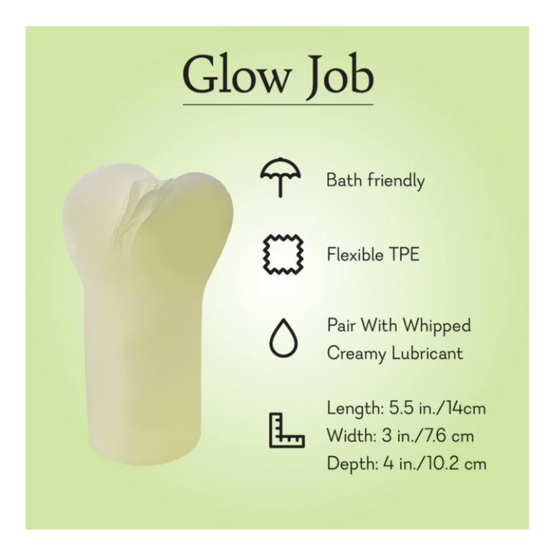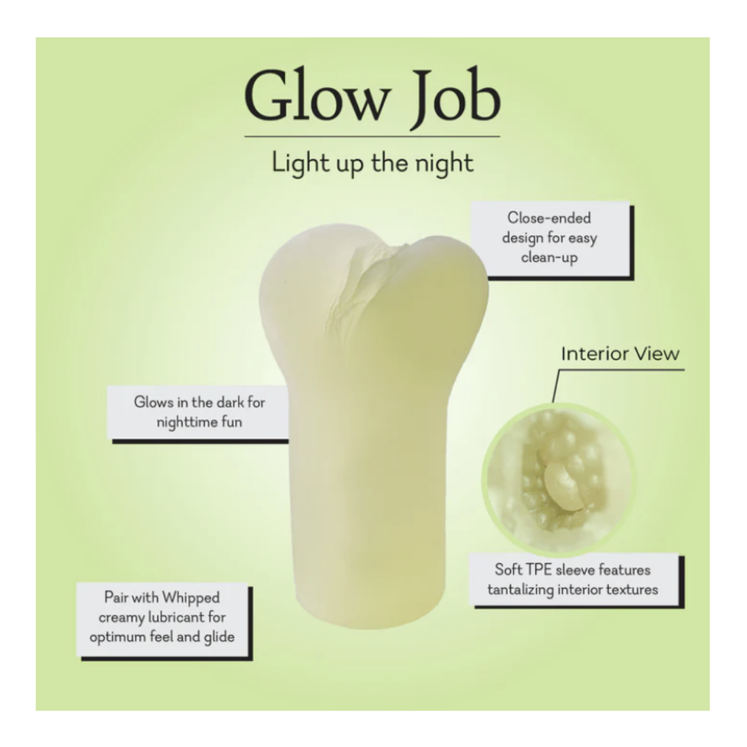 We all know that everything fun happens in the dark. What better way to light up the night than with Glow Job – our glow-in-the-dark masturbator.